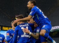 Далее Демирбай от линии штрафной с рикошетом отправлял мяч к дальней «девятке», не залетел «снаряд» в цель. Дауд слишком грубо правила нарушал на Шике, за что увидел перед собой «желтый свет». А Андрих со штрафного классный гол забил, поставив «Боруссию» в совсем неприятное положение. Прямо над «стенкой» полетел мяч, хоть картины пиши с такого эпизода – 3:1, проблем у подопечных Розе становилось все больше. Видимо, небольшой перерыв повлиял на них отрицательно, а вот на «аспириновых» - совершенно иначе. Фаворит вообще плохо играл, будто и не хотел. Холанн грустно взирал со всем с трибуны. И в самом деле, какое-то удручающее зрелище в плане действий хозяев поля. Под конец тайма еще могли гости забить. Диаби прострелил с левого края штрафной, заработанный угловой разыгрывал Вирц. Баккер решил за мяч побороться, последовал удар в ближний угол, Кобель с трудом, но отразил, опасность на этот раз нейтрализовали дортмундцы. Три минуты рефери добавил к основному времени тайма, но там уже ничего не произошло. «Боруссии» надо было серьезно задуматься над тем, как отыграть два мяча, дабы хотя бы ничейного результата достичь.