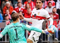 На первой минуте встречи мы увидели, как серьезно был настроен «Штутгарт». Томаш выбежал на очную ставку с вратарем ФКБ, но вовремя вышел из ворот Нойер, да еще и офсайд был зафиксирован, однако болельщики чемпиона напряглись. Потом уже пришел черед Мюллера отдавать классный пас на Гнабри, только вот другой Мюллер, который вратарь гостей, сумел быстрее у мяча оказаться, нежели Серж, рукой достал «снаряд» голкипер. Киммих неплохо подал с углового, Упамекано выиграл борьбу на «втором этаже», но выше цели отправил головой «снаряд». Ньянзу же не успевал за Мармушем, потом решил его остановить руками, вот и первая желтая карточка в матче, получил ее молодой Танги. А потом все тот же Мармуш вылетел к воротам соперника, но тут Ньянзу сумел оказаться на месте, успел за противником. Честно, читалось, что «Бавария» несколько отлынивает, жаль даже, что она заранее завоевала титул, с таким отношением к болельщикам и футболу вообще надо быть где-нибудь за первой четверкой, за ее пределами. Вроде мюнхенцы и рисковали, но при этом чего-то им не доставало. Нагельсманна в отставку не отправить за подобное, однако надо ведь как-то влиять на своих подопечных? Наказание пришло довольно быстро, вездесущий Мармуш по правому краю отлично прошелся, отдал передачу низом к линии штрафной, там уже Томаш отлично пробил под перекладину – 1:0, гости вышли вперед.
