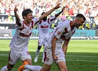 Ну, а «Штутгарт» просто чудесным образом спасся, да еще и стыки миновал, можно отправляться отдыхать. В последнем туре «швабам» предстояло сразиться с «Кельном» на своем поле, у которого тоже была мотивация одерживать верх. Однако хозяева поля просто не имели права огорчить своих болельщиков после того перфоманса, что они выдали на «Альянц Арене», когда не дали себя обыграть мюнхенской «Баварии» (2:2), показав, что аутсайдеры порой могут показывать более привлекательный футбол, нежели чемпионы, завоевывающие титул десять лет подряд в национальном первенстве. На 11-й минуте встречи поединка «Штутгарта» и «Кельна» рефери Шредер назначил пенальти. Вот только Калайджич не забил с точки, Швабе вытащил мяч из угла. Однако с розыгрыша углового Саша реабилитировался, Фюрих подал, а австриец головой переправил мяч в цель по центру – 1:0. Потом Калайджич мог и дубль оформить, со «стандарта» разрядил в левую «девятку», но и здесь потащил удар кипер «козлов». Пожалуй, Швабе был одним из лучших вратарей тура, уступив первое место только Ортеге из «Арминии». Такие вот интересные взаимосвязи у этих двух матчей. Если же говорить о дальнейшем развитии событий в дуэли, Модест на 59-й минуте счет сравнял, головой пробив по прискакавшему к нему «снаряду» - 1:1. Однако на третьей добавленной минуте к матчу сыграла японская связка, Ито подал с углового удачно, а Эндо головой пробил, пусть там и противник ногу вытягивал, и вратарь вроде все видел, но нет – 2:1, спасение для «Штутгарта», болельщики которого выдохнули. Клуб остался в элите немецкого футбола. Только в начале следующего сезона сразу надо будет браться за дело. Но… это сейчас так кажется, сейчас ведь задача решена, можно и расслабиться, Матараццо и его ребята – молодцы, вытащили концовку на морально-волевых. «Кельн» закончил гонку на седьмой строчке, дающую право выступить в Лиге конференций.