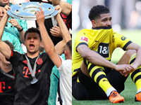Кто вот мог подумать (разумеется в контексте того, что случилось в преддверии последнего тура), что «Бавария» станет чемпионом? Но это случилось. Начнем с матча «Боруссии» и «Майнца» на «Сигнал Идуна Парк». Первый тайм «шмели» провели просто отвратно, т.е. они вроде и смотрелись лучше, но пропустили дважды в таком важном матче. Мален уже на четвертой минуте рядом с ближней стойкой пробил. А потом приезжие устроили кордебалет конкуренту. На 14-й минуте после удара Фернандеша мяч попал в Джаку и улетел за пределы поля. Эдимилсон навесил с углового на ближний край вратарской, куда влетел Ханче-Ольсен, и Андреас с нескольких метров пробил под ближнюю стойку – 0:1. Впрочем, почти тут же «Боруссия» могла сравнять счёт. Мален покатил на правый угол штрафной на Геррейру, которому сзади заехал по ноге Кор. Главный арбитр встречи Марко Фриц в динамике проморгал этот момент, по после подсказки ВАР и просмотра повтора за бровкой изменил своё решение и указал на «точку». Пенальти взялся исполнить Алле, который пробил правее центра, но Дамен угадал направление удара и выручил свою команду. Вскоре дортмундцы попытались выпросить у судьи ещё один пенальти. И не без оснований – Геррейру откликнулся на передачу на линии вратарской, но получил удар локтём в спину. Однако на сей раз Фриц не стал указывать на «точку» и даже не сходил к монитору. Пока дортмундцы приходили в себя, они пропустили во второй раз. Мартин отпасовал на Ли на левый край, и Сон навесил на линию вратарской, откуда цель поразил Онисиво, Кобель коснулся мяча, но не смог его отразить – 0:2. На второй тайм у «шмелей» оставался ворох проблем, учитывая то, что в параллельной встрече «красные» побеждали конкурента. Алле, кстати, на 19-й минуте с пенальти не забил. В правую сторону Себастьен пробил, не очень уверенно, вратарь «Майнца» выручил. После перерыва на 69-й минуте Геррейру, получив передачу в чужой штрафной от Рейны, пробил в падении по воротам, и мяч рикошетом от левой штанги залетел в «сетку» - 1:2. И вот тут приезжие стали нервничать, однако «Боруссия» сумела забить еще раз аж на шестой добавленной минуте. Сначала Алле в падении поразил цель метров с шести, однако, к сожалению для дортмундцев, у него был зафиксирован офсайд, и гол не засчитали. На финальных же мгновения «Боруссия» всё же вырвала ничью. Рейна навесил с левого края на Зюле, который пробил Дамена – 2:2. Но потом рефери дал атаку провести хозяевам, однако гости с трудом отбились. Упали потом футболисты «черно-желтых», плакали, а Терзич подходил отдельно к каждому и поддерживал, как мог. Зрители расстроились, еще бы, ведь в параллельной встрече «Бавария» все-таки одолела «Кельн» в не менее драматичной битве, туда мы и переносимся, пора рассказать о «чемпионской битве».
