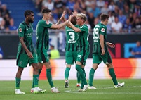 Находится пока перед зоной вылета и стыковых матчей «Аугсбург». Команда лишь в контрольной встрече (прям как их всех это объединяет) совладала с небезызвестным «Гройтер Фюртом» (2:1), а вот в первенстве пока никак победить не может и входит в шестерку тех клубов, которые к пятому туру еще ни разу не одерживали верх над кем-либо из оппонентов. На этот раз «фуггеры» получили три пробоины от «Лейпцига», собственно, потонув от этого разгрома. Никаких шансов «быки» не оставили своему оппоненту. Прекрасно на левом краю обороны проявил себя Раум. Отлично сыграли Симонс и Опенда. Собственно, эти трое и сделали результат еще в первой половине встречи. Симонс, Опенда и Раум по очереди отличились, помогли им в этом… Опенда, Симонс (ролями поменялись) и Поульсен, хоть тут человек не из вышеназванной компании. Тиц и Демирович свои моменты имели после перерыва, однако на их пути встал Бласвих, на уровне с которым сыграл лишь Градецки (который пусть и пропустил дважды), а чуточку лучше проявил себя в рамке лишь Бауманн (в нынешнем туре, разумеется). Хорошее настроение у команды Розе перед выездом в Швейцарию к «Янг Бойз».
