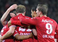 А вот "Аякс" в этом туре оступился и тем самым отпустил ПСВ и "Твенте" вперёд на четыре очка. Чем бы не славился амстердамский клуб, а уже терпит второе поражение в этом сезоне, причём второе на своём поле. В матче с "Ден Хаагом" всё сразу стало играть против хозяев. Вначале стоит отметить тот факт, что на неделе была сложная игра против "Осера", тем более на выезде. Мартину Йолу, скорее надо было хоть как-то изменить состав и поставить свежую кровь, вместо этого на поле появились практически всё те же одиннадцать футболистов. Более того на скамейке остался Эйонг Эно и похоже, что именно камерунца не хватало амстердамцем, для более грамотной связи обороны и атаки. В итоги Суарес и Эль Хамдауи фактически остались на голодном пайке, имея за весь матч по одному моменту. К тому же, уже на 17-й минуте вынужден был покинуть поле ван дер Вил, что также ударило по атаке, да и защите на пользу не пошло. В итоге, амстердамцы выглядели бледной тенью самих себя. Опасность у ворот Коутиньо возникала лишь по праздникам, мяч в ногах не держался, и хозяева вообще грустно смотрелись на фоне своего соперника, которому как раз удавалось почти все. Из всех моментов, что стоит отметить у "аяксидов", это удар на технику от Суареса, не предвещавший никакой угрозы и более опасный удар Эль Хамдауи почти в упор, но здесь стоит отметить феноминальную реакцию Коутинью, выручившего свою команду. "Ден Хааг" же великолепно комбинировал, было сразу видно, что игра в пас и взаимопонимание на высоком уровне, а вот мастерства всё же не хватает, и прежде всего, на завершающей стадии. Оборона хозяев была на стоко дрявой в этот вечер, что можно было оформить разгром на "Амстердам Арене", а вместо этого АДО удосужился лишь на один гол, который и вовсе был забит из положения "вне игры". Но здесь хочется прежде отметить потрясающую комбинацию, которую провели гости. Но тот факт, что гол был забит нечестно, всё же скрасил приятные впечатления. На завершающей стадии сыграл Веслей Верхук, один из лидеров команды, вогнавший техничным ударом мяч в дальний верхний угол. На второй тайм Мартин Йол выпустил Миралема Сулеймани, убрав Вурнона Аниту. Это заметно освежило игру хозяев, но результата всё равно не принесло. Правда, без опасных моментов не обошлось. Самый выгодный шанс сравнять счёт упустил Сим Де Йонг, не попавший даже в створ. В целом заслуженная победа приезжей команды.