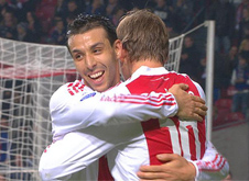 Сложно было представить более удобного соперника для амстердамцев, чем "Де Графсхап". Как бы тяжело не складывалась жизнь у "Аякса", у дутинхемцев он обязан был выигрывать, причём все ждали более крупного счёта, чем итоговые 2:0. Но в отличии от матча прошлого тура, на этот раз всё по делу и даже могло быть больше. А ждали от "аяксидов" как раз именно больше голов, и не зря, ведь первый круг показал, что "Де Графсхапу" можно забивать. Напомним, тогда в гостях "Аякс" забил аж пять мячей. После матча наставник "Аякса" Франк Де Бур отметил, что доволен итоговым результатом, а вот содержанием игры не очень. "Мы слишком много позволили сопернику, играли слишком расхлябанно, за что вполне могли быть наказаны, но надо сказать спасибо сопернику, что тот не использовал свои моменты". И ведь тренер прав, "Аякс" пока ещё далёк от идеальной формы, тем более после ухода двух лидеров команды. На данный момент клуб находится на стадии становления - это и привлекает интерес. В отличии от недельной давности состав на матч с "Де Графсхапом" чуть видоизменился. С первых минут, как и предполагалось до матча, появился Мунир Эль Хамдауи, а Сим Де Йонг, до этого игравший центрфорварда, ушёл на позицию атакующего полузащитника. Собственно именно эта парочка и сыграла решающую роль в этом матче. За Эль Хамдауи было вдвойне интересно понаблюдать, кроме того, что его давненько не было в составе, он ещё мог отметиться юбилейным, сотым голом в своей карьере. И ведь как в воду глядели, так и случилось. Да, может матч он провёл не выдающийся, но своё дело сделал. У гостей так же в составе произошло лишь одно изменение. Арендованный у "Бреды" Тирон Лоран вышел с первых минут вместо травмированного Вито Вормгора. Отметим, что дебют у защитника получился не очень успешным, ведь его загонял, в прямом смысле этого слова, молодой вингер Лоренцо Эбесилио. Первая половина матча получилась чересчур скучной и не богатой на опасные моменты. В дебюте матча арбитр углядел не существующий офсайд у Де Риддера, который вывалился едва ли не один на один со Стекеленбургом. Тем неменее удар последовал и кипер с ним справился, так что в любом случае гола не было бы. Как показал повтор, офсайд имел место быть, но в него залез другой футболист Юрий Роуз, а Де Риддер и вовсе не был в офсайде. "Аякс" мог ответить опасной атакой, если бы Кристиан Эриксен был поточнее уже в штрафной площади соперника, а так просто подарил мяч голкиперу. Следующая атака "аяксидов" пришлась на 17-ю минуту, когда великолепную передачу в штрафную сделал Сим Де Йонг, но Эль Хамдауи пробил намного выше створа. Ближе к середине тайма аналогичным ударом отметился теперь уже сам Де Йонг, после передачи Сулеймани. Франк Де Бур очень часто вставал с тренерского ложе и со злостью на лице что-то не добро выговаривал в сторону своих подопечных. И ведь ыбло за что их журить. Почувствовал, что в перерыве команде "прилетит" от тренера за такую бездарность, амстердамцы собрались и на 43-й минуте соорудили-таки гол. Эль Хамдауи заслал мяч в штрафную на Эбесилио, тот сместивший до лицевой линии прострелил дальше на Сулеймани. Серб в подкате пытался замкнуть эту передачу, но вышло не удачно, зато вовремя на добивание успел Мунир Эль Хамдауи - 1:0. Сотый гол марокканца в карьере! После перерыва "Аякс" продолжил играть в тот же футбол. Подопечные Де Бура особо не 