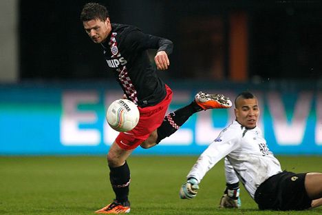 В центральном матче тура сошлись команды с именем, которые в предыдущем туре потерпели досадные поражения от "Эксельсиора" и АДО Ден Хаага соответственно. Было понятно, что и АЗ, и ПСВ подойдут к матчу с особым настроем, ведь нужно реабилитироваться и не попасть в яму, тем более, что рядом не дремлют конкуренты. "Твенте" уже догнал эйндховенцов, а АЗ с его шестого места грозят сдвинуть "Рода" и "Утрехт". В итоге, матч получился с обилием опасных моментов как у одних, так и у других ворот. Единственное отличие, что мячи влетали в сетку только одной команды. Дублями отметились Маркус Берг и Балаж Джуджак, причём венгр забил два красивых мяча с правой ноги, хотя сам он левша. Стоит отметить и великолепную игру в рамке Андреаса Исакссона. Шведский кипер эйндховенцев тащил всё, что летело в створ. Именно благодаря этому ПСВ и имеет в графе пропущенные - ноль.