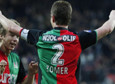 Лидер голландского чемпионата не сумел одержать победу в Неймегене, пропустив в самой концовке матча и заработав лишь очко. Взгляды "Аякса" и "Твенте" с надежной были направлены в сторону НЕКа, который хоть и тащится в середине таблицы, но является весьма неприятным соперником для любых команд. Хотя в последнее время Неймеген достаточно слаб. Команда попала в кризис и движется по нисходящей, апогеем падения стал матч прошлого тура с АДО, который НЕК проиграл со счетом 1:5. При этом "Неймеген" может похвастаться наличием в своем составе лучшего бомбардира турнира. Бьорн Влеминкс опережает Булыкина на один гол и регулярно забивает, помогая команде, которая очень часто играет вничью в этом сезоне. Вот и на своем поле чаще всего НЕК завершал матчи мирно, а уступил только два раза. Что касается ПСВ, то здесь непременно должна была случиться потеря очков, рано или поздно. Ещё в прошлом туре эйндховенцы могли оступиться, если бы не арбитр, который решился назначить пенальти и принёс "фермерам" три балла. Того, что не случилось в туре прошлом, произошло в этом. ПСВ играл не хуже чем в туре прошлом, а даже в чём-то и лучше, но игра в Лиге Европы по среди недели дала о себе знать. Эйндховенцев просто не хватило на все 90 минут. Помимо этого, Фред Руттен по-прежнему не может рассчитывать на Олу Тойвонена в чемпионате, да и в атаке наставник ПСВ решил поэксперементировать, посадив на лавку Маркуса Берга и выпустив Зеефуйка. Ещё одно изменение, по сравнению с прошлым туром, коснулось линии обороны. Франсиско Родригес заменил Марсело. Гости попытались взять своё на первых минутах встречи. Видимо именно такая задача и ставилась. На 17-й минуте матча арбитр был вправе указать на точку. Джермейн Ленс получил передачу в штрафной и был сбит Зомером. Рефери нарушения не увидел и лишил гостей одиннадцатиметрового. Не прошло и трёх минут, как гости имели отличный шанс выйти вперёд. Джуджак оказался первым на подборе и сразу же пробил в сторону ворот. Находившийся в штрафной хозяев Ленс исхитрился опередить защитника и в падении подправил снаряд в перекладину ворот Силлиссена. Ближе к получасу НЕК наконец-таки перешёл на чужую половину поля и создал пару опасных моментов. Наиболее запомнились удары головой капитана хозяев Рамона Зомера, но в обоих случаях мяч даже не попал в створ. Ближе к перерыву темп матча совсем упал и команды мыслями уже были в раздевалке, но Лерой Джордж, минутами ранее не использовавший неплохой шанс, был не согласен с этим мнением и на 41-й минуте сотворил чудо-гол. С левой ноги вингер НЕКа направил мяч в дальний угол. В итоге, снаряд от штанги влетел в сетку - 1:0. Лишь после того, как мяч побывал в воротах Исакссона, подопечные Руттена вынужденно пошли вперед большими силами. Буквально тут же им удалось счет сравнять, что позволило тренеру и игрокам совсем иначе строить планы на второй тайм. Станислав Манолев накинул мяч на дальнюю штангу, где Джуджак в падении, опередив защитника, направил снаряд точно в цель. После перерыва, как и ожидалось, ПСВ уже не стал церемониться с противником, сразу же закрыв того у ворот. Ну а НЕК сейчас не настолько силен, чтобы долго выдерживать столь мощный напор, потому гол Ленса сенсацией не стал. Добившись минимального преимущества, ПСВ, как впрочем и всегда, сбавил обороты, и добивать соперника не стал. А может, э
