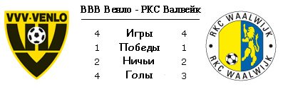 ВВВ Венло в матче против РКС придётся обойтись без своего лидера Ахмеда Мусы, который получил две жёлтые карточки в прошлом туре, в матче против "Фейеноорда". А вот у РКС всё наоборот. Лидер атаки Джеффри Кастилльон отсидел одноматчевую дисквалификацию и теперь наверняка составит пару Рику тен Вурде в атаке гостей. Последний раз команды встречались в сезоне 2009-2010 годов, тогда в двухматчевом противостоянии сильнее оказался ВВВ, обыграв "Валвейк" со счётом 3:0 дома и 2:1 на выезде.