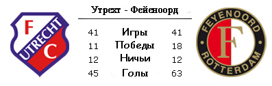 Избиение на глазах собственных болельщиков - не к такому результату стремятся команды. Однако "Утрехту" пришлось пережить подобный позор неделю назад, когда на поле "Галгенварда" команду Яна Воутерса вкатал в газон "Твенте". Теперь, естественно, хозяева попытаются реабилитироваться за это унижение и, как минимум, поборются за победу. Уверенности в своих силах "Утрехту" не занимать, ведь не так давно здесь же был бит действующий чемпион, победа над которым должна была надолго зарядить игроков. Но и "Фейе" ведь не лыком шит. Рональд Куман в очередной раз доказал, что его подопечным по силам тягаться с сильнейшими командами Эре, но не стоит забывать, что случилось с роттердамцами после такого же отменного матча с "Аяксом", когда излишней самоуверенностью противника легко воспользовался "Гронинген".