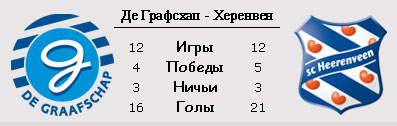 В открытии второго игрового дня примут участие "Де Графсхап" и "Херенвен". И те, и другие испытывают кадровые проблемы. У хозяев не сыграют Куяла из-за травмы и Роуз с Мейером из-за дисквалификаций, зато наверняка с первых минут появится молодой бельгиец Зигуй Бадибанга, арендованный у "Андерлехта". Главной потерей гостей является Усама Ассаиди, который отбыл на Кубок Африки в составе сборной Марокко. Впрочем, наставнику "Фризов" Рону Янсу не впервой выпускать на место Ассаиди - Райива Ван Ла Парру. "Херенвен" продолжает вести борьбу за место в еврокубках, а вот "Де Графсхап" ведёт другую борьбу, за место в элите. Шансов на успех, безусловно, больше у гостей, но кто знает, в какой форме сейчас команды после довольно-таки продолжительного перерыва.