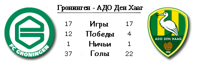 Интереснейшая битва! В прошлом сезоне команды запомнились тем, что устроили настоящее побоище и сказку атакующего футбола в плей-офф к Лиге Европы. Тогда творилось что-то невероятное. Они обменялись домашними победами со счетом 5:1. Редко такое случается. Да никогда вовсе. И в серии пенальти АДО был сильнее. Так что у "Гронингена", который был одной из самых "домашних" команд Эредивизии, есть отличный шанс отомстить гаагцам. Примечательно, что в прошлом сезоне эти соперники встречались аж пять раз! И лишь однажды АДО был сильнее. В первом туре этого сезона оба коллектива сыграли не лучшим образом. АДО разошелся миром с "Витессом", а "Гронинген" проиграл "Роде".