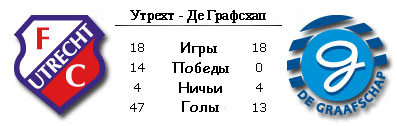 "Утрехт" затеял распродажу летом и солидное обновление. Разумеется, это приведет к некой перестройке и потребуется время для притирки. Именно этим можно объяснить не самый лучший старт в чемпионате - с нулевой ничьей против "Венло". Впрочем, "Де Графсхап" сразу же начал с последнего места в таблице. Причина в свидании с "Аяксом", который забил в ворота "графов" четыре гола, а пропустил лишь один. Так что реабилитация нужна обоим клубам. В прошлом сезоне они оба раза сыграли вничью - 0:0 и 2:2. Именно миром завершались их матчи в последние годы чаще всего. В том же сезоне они и в Кубке сыграли вничью. Только в серии пенальти "Утрехт" оказался сильнее. А "Де Графсхап" в последний раз выигрывал у "Утрехта" лишь в 2003-м году.