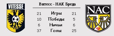 "Витесс" и "Бреда" ужасно стартовали во втором круге. Арнемцы потерпели два поражения от ПСВ и "Неймегена". Более того, на неделе команда Джона ван ден Брома была выбита из Кубка Голландии "Херенвеном". Хуже серию и не придумаешь, а посему реабилитироваться просто необходимо, иначе скоро "Витесс" мы увидим в середине таблицы. НАК стартовал во втором круге получше, набрав из шести возможных лишь одно очко. Но, в отличии от "Витесса", подопечные Джона Карелса находятся на 12-ом месте и расстояние до самого низа не такое уж большое. Оба коллектива голодны до побед, а значит матч должен получиться интересным.