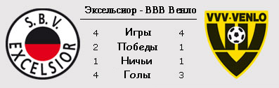 Матч главных аутсайдеров пройдёт в логове "Эксельсиора". У роттердамской команды есть хороший шанс покинуть последнюю строчку в таблице и оставить позади "Венло", который на два очка опережает своих соседей по таблице. В случае поражения хозяева отдалятся от места плей-офф аж на пять очков. Обе команды удивили после зимнего перерыва, выиграв свои матчи. "Эксельсиор" со счётом 3:0 одолел "Бреду", а "Венло" и вовсе сумел отнять очки у "Фейеноорда", победив 2:1. Правда вот в прошлом туре уже пришлось обоим коллективам крупно проигрывать. 3:0 роттердамцы проиграли "Хераклесу", а ВВВ уступил РКС ещё крупнее - 4:0. Шансы на успех к тех, и других, приблизительно равны. Об этом даже говорит статистика. Ведь в первом круге была зафиксирована нулевая ничья, а в прошлом году каждая из команд победила на своём поле с минимальным счётом 1:0.