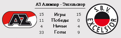 АЗ имеет отличный шанс вернуть себе первую строчку в таблице, как минимум до завтра, когда сыграет ПСВ. Более того, хороший шанс у команды Вербеека, чтобы создать задел перед "Твенте", который в матче открытии 21-го тура весьма неожиданно уступил "Хераклесу". В случае победы, у алкмаарцев будет задел в шесть баллов. Впрочем, даже если проиграют, то вторую строчку не покинут. Противостоять команде из Алкмаара будет роттердамский "Эксельсиор", который в последнее время чередует победы и поражения. К слову, если судить по последним двум годам, то для АЗ это не очень удобный соперник. Ведь за эти два года алкмаарцы ни разу не обыграли роттердамцев, а в первом круге сезона текущего, сыграли вничью - 0:0. Но тот поединок больше запомнился не итоговым счётом, а развитием событий. Команды отыграли первый тайм, а второй был доигран значительно позже, из-за сильного тумана.