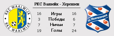 Очень интересный поединок ожидается в Валвейке, где местный РКС примет "Херенвен". А интересен он будет тем, что "Валвейк" последние два тура удивил всех, победив в обоих матчах с общим счётом 7:0. "Херенвен" же сам по себе в этом сезоне очень интересен. Команда Рона Янса в случае победы может занять третью строчку в таблице, поскольку "Твенте" потерял очки. Более того, наверняка пополнить свой бомбардирский счёт хочет Бас Дост, который с 19-ю мячами возглавляет список бомбардиров Эре. Интересно, сможет ли "Херенвен" вырваться на третью строчку, или же РКС продолжит свою классную серию из побед.