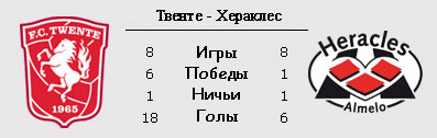 В начале января, когда в голландском первенстве шел перерыв между кругами, у "Твенте" произошла смена главного тренера. Вместо Ко Адриансе, с которым руководство клуба из Энсхеде расторгло контракт, руководить командой был приглашен тот англичанин Стив Макларен - тот самый, кому удалось полтора года назад впервые в истории "Красных" выиграть чемпионский титул. Что ж, похоже, "Твенте" и Макларен просто созданы друг для друга - в первых двух матчах с новым старым наставником были крупно обыграны и "Ваалвейк" (5:0), и "Гронинген". "Твенте" уже сегодня в случае победы может настигнуть дуэт лидеров ПСВ-АЗ и, конечно же, еще поборется за "золото". "Хераклес" в новом году также выступает очень даже неплохо. Клуб из Альмело проиграл лишь в самом первом матче второго круга, уступив на выезде набравшему отличную форму "Гронингену" (1:2), зато в двух следующих домашних встречах "гераклы" разгромили "Эксельсиор" (3:0) и отняли очки у ПСВ (1:1), а в Кубке Голландии благодаря победе над "Валвейком" (3:0) добрались до полуфинальной стадии. В первом круге сегодняшние соперники разошлись миром, забив друг другу по одному мячу.