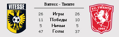 В текущий сезон "Витесс" вступал с большими амбициями, усилив состав и переманив из АДО Ден Хааг успешного тренера Джона ван ден Брома. И первый круг клуб из Арнема провел на хорошем уровне, державшись недалеко от лидирующей группы. Увы, после зимнего перерыва "желто-черных" просто не узнать. Они проиграли в трех из четырех матчах Эредивизи, а также вылетели из Кубка Голландии, уступив дома "Херенвену". "Твенте", вернувший на тренерский мостик англичанина Стива Макларена, в прошлом туре неожиданно уступил на своем поле "Хераклесу" (2:3) и отпустил в отрыв дуэт лидеров ПСВ-АЗ. Впрочем, не будем забывать, что в запасе у "Красных" есть отложенный из-за непогоды матч, так что их надежды на чемпионский титул по-прежнему выглядят вполне обоснованными. В минувший четверг "Твенте" съездил в Бухарест, где добился минимальной победы над местным "Стяуа" в рамках 1/16 финала Лиги Европы. Этот гол на свой счёт записал Ола Джон.