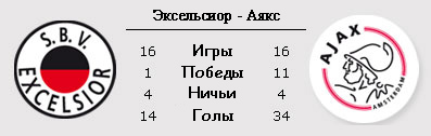 "Эксельсиор" не так уж и плохо начал второй круг чемпионата Голландии. Аутсайдер Эредивизии, например, уверенно выиграл обе домашние встречи, одолев и НАК (3:0), и ВВВ Венло (3:1), причем в обоих случаях соперники довольно быстро оставались в численном меньшинстве из-за удалений. В прошлом туре команда Джона Ламмерса сделала то, что ей в текущем сезоне удавалось крайне редко - набрала очки на выезде, сыграв вничью в Гааге с местным АДО Ден Хааг (1:1). "Аякс" в прошлой четверг едва не сотворил невероятное чудо на "Олд Траффорд". В поединке против "Манчестер Юнайтед" на знаменитом "Театре Мечты" клуб из Амстердама не был сломлен даже после быстро пропущенного гола от Хавьера Эрнандеса и ответил на него двумя точными ударами Араса Озбилиза и Тоби Алдервейрелда. Забей "аяксиды" ещё разок, и именно они, а не манкунианцы, вышли бы в следующий раунд, но подопечным Франка де Бура, игравшим без многих ведущих футболистов и, в частности, Дмитрия Булыкина, элементарно не хватило времени.
