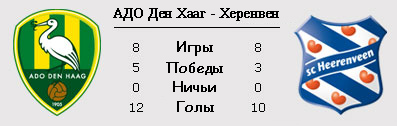 | Статистика встреч: 5-3-9 (15:29) | | Сезон 2011/2012 | | 29.10.2011 Херенвен - АДО Ден Хааг - 4:0 | | | | Сезон 2010/2011 | | 21.01.2011 АДО Ден Хааг - Херенвен - 3:1 | | 03.10.2010 Херенвен - АДО Ден Хааг - 0:0 | | | | Сезон 2009/2010 | | 30.01.2010 АДО Ден Хааг - Херенвен - 2:1 | | 31.10.2009 Херенвен - АДО Ден Хааг - 3:0 | | | | Сезон 2008/2009 | | 03.05.2009 Херенвен - АДО Ден Хааг - 2:2 | | 09.11.2008 АДО Ден Хааг - Херенвен - 0:1 | | | | Сезон 2006/2007 | | 07.04.2007 Херенвен - АДО Ден Хааг - 1:1 | | 19.08.2006 АДО Ден Хааг - Херенвен - 2:3 | |