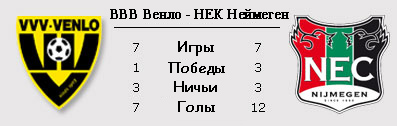 Если не считать последнее поражение "Венло", то эти две команды в последнее время заметно прибавили, как в игре, так и в результате. И пусть ВВВ в прошлом туре проиграл "Роде", зато до этого имел потрясающую статистику из четырёх побед кряду. У НЕКа тоже дела пошли в гору. Подопечные Алекса Пастора не проигрывают уже три тура, обыграв при этом "Гронинген", а в прошлом туре и "Твенте". Таким образом, НЕК стал второй командой после "Хераклеса", которой удалось обыграть Стива Макларена. Битва в личном противостоянии обязаны быть, поскольку команды разделяет всего одно очко, а значит, команда победитель, продвинется вверх по таблице. "Венло" дома представляет сейчас особую угрозу, имея в последних пяти домашних матчах пять побед. Удастся ли НЕКу прервать эту хорошую серию? Увидим.