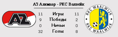 Воскресную программу тура начинает лидер Эре АЗ. В гости к "Алкмаару" пожалует "Валвейк". На неделе подопечные Гертьяна Вербеека были выбиты из Кубка Голландии на стадии полуфинала скромным "Хераклесом". Теперь АЗ будет играть на два фронта, а не на три, ведь в Лиге Европы алкмаарцам удалось продвинуться дальше. В чемпионате пока дела идут хорошо. Команда возглавляет турнирную таблицу, правда имея совсем минимальное преимущество. Конкуренты только и ждут осечки. В домашних матчах АЗ чередует победу и ничью, а в целом имеет прекрасную статистику, не проиграв ещё ни разу. В прошлом туре команде Вербеека не удалось взломать оборону "Бреды". РКС тоже не выглядит проходимым соперником. Команда из Валвейка набирает очки там, где это ей позволительно. Например в прошлом туре был обыгран "Де Графсхап", а до крупного поражения от "Аякса" были ещё две победы со счётом 1:0 над "Эксельсиором" и "Витессом". И пусть за еврокубки вряд ли подопечные Бруда поборются, зато о вылете речи и быть не может.