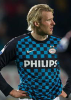 ПСВ, который недавно вылетел из Лиги Европы, а также спустился в чемпионате на четвёртое место, в минувшие выходные порадовал своих поклонников первым трофеем за долгое время. Команда Филлипа Коку одержала крупную победу над "Хераклесом" (3:0), тем самым выиграв национальный Кубок в девятый раз в своей истории. На данный момент, это единственный положительный момент для команды в сезоне. В чемпионате же дела у команды Филлипа Коку обстоят куда плачевнее. В отчётном туре эйндховенцы проиграли крепкому середняку "Валвейку" и тем самым практически наверняка распрощались с золотыми медалями чемпионата. Теоретически семи очковый задел "Аякса" ещё модно отыграть, но практически - это невозможно. Во-первых, потому что "Аякс" сейчас находится в блестящей форме, а, во-вторых, сами эйндховенцы прибывают в ужасном состоянии. Победа в национальном Кубке даёт право сыграть на будущий сезон в Лиге Европы, видимо этим и довольствуются "фермеры". Особых изменений в составе своей команды Коку не произвёл, разве что получившего накануне травму Вилфреда Бауму заменил в центре обороны Тимоти Дерейк. Как и в кубковом матче на скамейке остался центрфорвард Тим Матавж, а его место вновь занял номинальный вингер Джермейн Ленс. Именно он и создал первый опасный момент в матче, но его выстрелу не хватило точности. Ближе к получасу игры ПСВ сам создал себе проблем. Марсело на ровном месте подарил мяч сопернику, едва не обрезав всю команду. Хозяева перевели мяч налево, откуда Митчелл Схет выполнил прострельную передачу и лишь Титон спас эйндховенцев от неприятностей. РКС почувствовав, что всё не так уж и сложно как кажется на первый взгляд, продолжил атаковать, а ко всем проблемам ПСВ добавилась ещё и травма колена Струтмана, которого заменил Энгелаар. Ближе к концу тайма голкипер ПСВ Пшемыслав Титон по случайности сыграл руками за пределами штрафной площади, однако рефери не назначил даже штрафного, не говоря уже о других санкциях. До перерыва голов зрители так и не увидели, зато после, в интервал трёх минут, в ворота ПСВ влетели аж два. Вначале классно сыграл Сандер Дейтс. Полузащитник РКС взял игру на себя и, как оказалось, по недосягаемой для Титона траектории направил снаряд под перекладину. Впрочем, вина за пропущенный гол всё же лежит на кипере, который слишком далеко вышел из ворот, да и Марсело мог бы поактивнее встречать соперника. Удвоил преимущество хозяев Митчелл Схет, его удар рикошетом от ноги Хатчинсона залетел в сетку. Возможно создаться впечатление, что ПСВ вообще не создавал моментов, но это всё же не так. Просто блестяще в рамке ворот "Валвейка" играл как раз эйндховенец Зут, отданный сюда в аренду. Йерун тащил несколько опасных выстрелов Ленса и Мертенса. За двадцать минут до конца матча у ПСВ появилась ещё одна кадровая проблема. Левый деф Эрик Питерс получил травму, а Коку решил рискнуть, выпустив Яна Веннегора оф Хесселинка. Замена себя оправдала и "Большой Ян" в концовке матча один гол отквитал, забив свой первый гол за ПСВ в нынешнем сезоне. Впрочем, вряд ли этот гол порадовал Веннегора, ведь команда всё равно проиграла. В следующем туре для ПСВ уж точно всё решится. Команде Коку предстоит поединок против АЗ Алкмаара. В случае победы можно зацепиться за Лигу Чемпионов, а поражение наверняка отсеет Эйндховен от первых двух мест. |