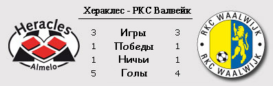 | Статистика встреч: 3-2-2 (10:8) | | Сезон 2011/2012 | | 06.08.2011 РКС Валвейк - Хераклес - 2:2 | | | | Сезон 2009/2010 | | 10.02.2007 Хераклес - РКС Валвейк - 4:1 | | 25.10.2006 РКС Валвейк - Хераклес - 0:1 | | | | Сезон 2006/2007 | | 10.02.2007 РКС Валвейк - Хераклес - 2:0 | | 25.10.2006 Хераклес - РКС Валвейк - 1:1 | | | | Сезон 2005/2006 | | 08.04.2006 РКС Валвейк - Хераклес - 0:2 | | 17.09.2005 Хераклес - РКС Валвейк - 0:2 | |
