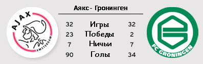 | Статистика встреч: 60-17-12 (231:102) | | Сезон 2011/2012 | | 02.10.2011 Гронинген - Аякс - 1:0 | | | | Сезон 2010/2011 | | 10.04.2011 Аякс - Гронинген - 2:0 | | 08.08.2010 Гронинген - Аякс - 2:2 | | | | Сезон 2009/2010 | | 28.03.2010 Аякс - Гронинген - 3:0 | | 02.08.2009 Гронинген - Аякс - 0:2 | | | | Сезон 2008/2009 | | 25.01.2009 Гронинген - Аякс - 1:0 | | 18.10.2008 Аякс - Гронинген - 1:0 | | | | Сезон 2007/2008 | | 16.04.2008 Гронинген - Аякс - 1:2 | | 02.09.2007 Аякс - Гронинген - 2:2 | | | | Сезон 2006/2007 | | 28.01.2007 Гронинген - Аякс - 2:3 | | 14.10.2006 Аякс - Гронинген - 3:2 | |
