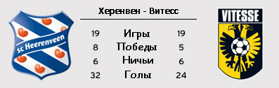 | Статистика встреч: 15-13-11 (56:51) | | Сезон 2011/2012 | | 01.10.2011 Витесс - Херенвен - 1:1 | | | | Сезон 2010/2011 | | 12.03.2011 Витесс - Херенвен - 1:1 | | 11.09.2010 Херенвен - Витесс - 2:1 | | | | Сезон 2009/2010 | | 14.03.2010 Витесс - Херенвен - 0:1 | | 15.08.2009 Херенвен - Витесс - 1:0 | | | | Сезон 2008/2009 | | 03.02.2009 Витесс - Херенвен - 1:0 | | 29.10.2008 Херенвен - Витесс - 0:2 | | | | Сезон 2007/2008 | | 02.02.2008 Херенвен - Витесс - 7:0 | | 11.11.2007 Витесс - Херенвен - 0:1 | | | | Сезон 2006/2007 | | 10.02.2007 Херенвен - Витесс - 0:0 | | 29.11.2006 Витесс - Херенвен - 1:3 | |