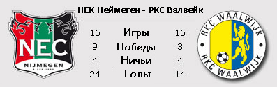Завершат программу тура соседи по турнирной таблице. В случае победы, НЕК может обойти РКС, а в случае поражения, "Валвейк" уйдёт в четырёхочковый отрыв. После великолепной серии из семи туров кряду без поражений, "Неймеген" в двух прошлых турах потерпел два поражения. Но здесь, в первую очередь, надо отметить, что в соперниках у команды Пастора были "Херенвен" и ПСВ. "Валвейк" два последних тура тоже не выиграл, но в одном сыграл вничью. Неделю назад команда Бруда играла лучше "Утрехта", однако умудрилась проиграть со счётом 0:2 на своём поле. Оба коллектива ещё могут попробовать зацепиться за место, которое даёт право сыграть плей-офф турнир, который выведет победителя в Лигу Европы. Матч должен получится очень интересным, а у НЕКа есть хороший шанс взять реванш за поражение в первом круге.