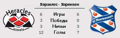 В последних пяти поединках "Хераклес" набрал десять очков, что можно назвать весьма неплохим результатом. Три победы, одна ничья и крупное поражение от "Аякса". В прошлом туре альмельцы обыграли "Де Графсхап" со счётом 3:2. Что касается "Херенвена", то подопечные Рона Янса потеряли очки в прошлом туре в матче с "Витессом" и, таким образом, оказались на последнем месте в шестёрке лидеров, отставая на два балла от ближайшего оппонента. Последние две гостевые встречи закончились для "Херенвена" победами, при этом было забито 7 мячей. Да и вообще в этом сезоне "фризы" хорошо выступают на выезде, имея третий показатель по очкам среди всех команд. Уступает команда Рона Янса только "Твенте" и "Аяксу". Отметим, что обе команды имеют кадровые потери. У хозяев будет отсутствовать Ломс и Дуарте из-за дисквалификаций, а у гостей целая серия травм в лице голкипера Ванденбусше и полевых игроков Янмата, Рорды, Швеца и Сибона. В первом круге победителя команды не выявили, сыграв вничью 1:1. Добавим, что "Херенвен" в истории противостояний с "Хераклесом" ещё ни разу не побеждал в Альмело.