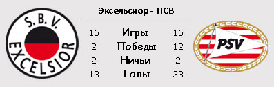 У ПСВ задача куда проще, чем у "Фейеноорда". Пусть и предстоит выезд в Роттердам, но к главному аутсайдеру чемпионата - "Эксельсиору". С другой стороны, младший роттердамский клуб может из принципа вгрызться в землю и не позволить себя проиграть, причём сразу по двум причинам. За своего старшего "товарища", а также за самого себя. И пусть это банально не звучит, но "Эксельсиор" ещё имеет шансы не вылететь в низший дивизион напрямую. Для этого надо не только обыграть ПСВ, но и ждать осечки "Де Графсхапа". В общем, задача не из простых. Впрочем, у ПСВ точно такая же ситуация, только в верхней части таблицы и за путёвку в Лигу Чемпионов. Надо побеждать, а также ждать осечки "Фейеноорда". Уже семь матчей кряду "Эксельсиор" не может набрать три очка. А в случае поражения от ПСВ, у команды по итогам сезона останется всего четыре победы, чего не было аж с с 1971/72 гг. В первом круге роттердамцы потерпели крупное поражение, а последняя домашняя победа над эйндховенцами датирована 27 мая 1985 годом (2:0).