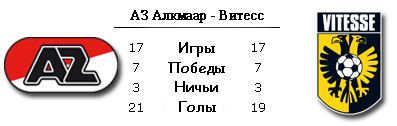 АЗ продолжает программу возрождения и делает это очень недурно. Команда совсем рядом с лидером и готова подхватить пальму первенства, если кто-то сверху оступится. Алкмарцы выиграли три матча из четырех: над ПСВ, НЕКом и "Гронингеном". Уступили только "Твенте". При этом если добавить сюда игру против "Олесуна", то получится, что АЗ три последние встречи выиграл с сухими разгромами. Команда явно на ходу. Радует глаз и "Витесс", который всего на два балла отстал от АЗ. У команды есть две победы над "Венло" и "Утрехтом", ничья с АДО, но последнее разгромное поражение от "Аякса" картину смазало. Есть шанс реабилитироваться. Хотя в прошлом сезоне в Алкмаре победил АЗ, а в Арнеме случилась ничья. Кстати, уже 12 матчей кряду на выезде "Витесс" не может победить. Последняя победа была датирована 14 ноября 2010 года над ВВВ Венло (1:5).