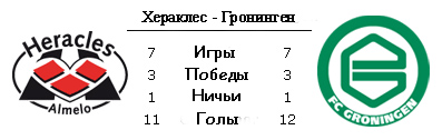 Матч прошлого тура против "Аякса" стал настоящим откровением даже для некоторых фанов "Гронингена". "Северяне" показали мощную игру в атаке и довольно надежно действовали в защите. Кроме того, была на их стороне и спортивная удача. В сумме всё это дало три важных очка в матче с чемпионом. Но то было на "Еуроборге". За его пределами команда Питера Хюистры выглядит не так воинственно, а в логове "Хераклеса" ей и вовсе придется примерить шкуру тех 300 спартанцев, которые сдерживали персов. Сравнение, возможно, не очень подходящее, однако дома альмельцы привычно очень сильны. Кроме того, у команды нет кадровых проблем, которые помешали бы ей положить очередные очки в копилку. А вот гости потеряли основного центрального защитника Квакмана, а также полузащитника Эневолдсена.