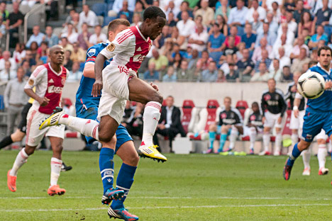 Центральный матч первого тура между "Аяксом" и АЗ Алкмааром завершился результативной боевой ничьей 2:2. В первую очередь, хочется отметить, что сей результат более чем закономерен. И те, и другие помимо забитых мячей имели ещё несколько хороших возможностей для взятия ворот. Где-то не хватило концентрации, где-то подвела реализация, а где-то классно играли голкиперы команд. И при всём при этом забитые мячи имели место быть, причём целых четыре. "Аякс" классно начал этот матч, забив уже на 9-й минуте. Грегори ван дер Вил поразил дальний верхний угол ворот Эстебана после передачи от партнёра. На перерыв команды так и ушли при минимальном преимуществе хозяев. На втором тайм наставник АЗ Гертьян Вербек очень хорошо настроил своих подопечных, которые к 50-й минуте матча не только отыгрались, но и повели в счёте. Дублем отметился американский форвард алкмаарцев Джози Алтидор, который дважды забивал с одного и того же места, в начале поразив дальний угол, а затем и ближний. "Аяксу" ничего не оставалось, как идти всеми силами вперёд и отыгрываться. В результате, это удалось сделать лишь за семь минут до конца матча. Экс-форвард АЗ Колбейнн Сигторссон с передачи Лукоки восстановил-таки равенство на табло - 2:2. В концовке встречи Франк де Бур бросил в бой Тео Янссена, который едва не положил победный мяч в сетку ворот соперника, но снаряд угодил в сетку с внешней стороны. Как итог: ничья 2:2.