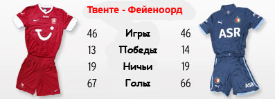 Семь очков отставания от "Твенте" просто обязуют "Фейеноорд" подходить к очной встрече с энсхедцами, настраиваясь только на победу. Для команды Кумана это будет тот самый матч "за шесть очков", осечка в котором просто недопустима. В прошлом сезоне именно роттердамцы смогли напомнить всем, что даже в своем логове "Твенте" отнюдь не неуязвим. Напротив, команда из Энсхеде также подвержена спадам, один из которых, случившийся прошлой весной, привел к потере призовых мест. Сейчас, естественно, ситуация иная. "Твенте" не демонстрирует яркой и открытой игры, однако с поразительным постоянством набирает очки, чем оправдывает рациональный подход Стива Макларена. Есть, конечно, у проповедуемой ныне спокойной манеры игры энсхедцами и недостатки, что показал провальный матч с "Ден Бошем" в Кубке Голландии в этот мид-уик. Впрочем, возможно, для "Твенте" даже было лучше проиграть посреди недели, чтобы затем сделать выводы и к главному матчу недели подойти в полной боевой готовности. Как и ранее, эта самая готовность страдает от отсутствия в составе травмированного Лероя Фера, который не сможет выйти и теперь на поле против своей бывшей команды. Также в лазарете остается центральный защитник Бьелланн, однако заменить датчанина в "Твенте" как раз есть кому. Ещё одной потерей "Туккерс" стал Дерик Боята, схлопотавший красную все в том же матче против "Ден Боша". В числе же приятных моментов для хозяев поля можно отметить возможное возвращение в основу Дмитрия Булыкина. Впрочем, маловероятно, чтобы Макларен решился разбивать атакующее трио Тадича, Шадли и Кастаньоса, стабильно игравших вместе последние недели. У Рональда Кумана также имеется дилемма с тем, кого выпускать в основе. Поскольку Рубен Схакен окончательно восстановился от травмы колена, не выпустить его в старте было бы глупо. Грациано Пелле также доказал, что достоин и дальше выходить с первых минут, а вот позиции Весли Верхука видятся не столь незыблемыми. Молодой талант Боэтиюс уже успел проявить себя в дерби с "Аяксом", тем самым доказав, что большие матчи ему уже по зубам. Это дает неплохие авансы вингеру перед очередной важной игрой чемпионата, потому его появление в основе уже не будет таким большим сюрпризом. В остальном же, у "Фейе" вырисовывается довольно знакомая картина. В полузащите не подвергаются сомнениям места Иммерса и Класи. Дополнит их, судя по всему, опять Леердам. В защитной линии также все предельно ясно. С возвращением в строй капитана де Врея, Рональд Куман отправил на фланг Мартинса Инди, который, возможно, не очень полезен в атаке, но зато позволяет оставаться тренеру спокойным во время атак соперника.