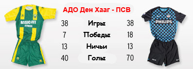 ПСВ, возглавивший турнирную таблицу по итогам прошлого тура, сразится в этом туре с "Ден Хаагом" на выезде. Насчёт лидерства эйндховенцам радоваться пока рано, ведь период конца ноября и начало декабря для подопечных Дика Адвоката станет проверкой на прочность и чемпионские амбиции. Три тура кряду "фермерам" предстоит отбиваться от грозных соперников в лице "Витесса", "Аякса" и "Твенте". Но всё это ещё впереди, а пока надо настроиться должным образом на предстоящего соперника, ведь можно начать терять очки уже сейчас, что тогда говорить о других матчах. АДО к 13-ому туру подходит с трёхматчевой беспроигрышной серией. В прошлом туре "Аисты" сумели отнять очки у АЗ. Сейчас команда идёт в верхней части таблицы, что вряд ли прогнозировалось в начале сезона. Впрочем, до финиша ещё далеко, а потому опуститься вниз можно быстро. Подопечные Мориса Стейна могут навязать свою игру нынешнему сопернику, правда это вряд ли можно представить. ПСВ намерен набирать три очка, перед серией очень важных матчей. АДО обедняется ещё и кадрами. Так в матче с эйндховенцами команде не помогут защитник Омеруо и основной центральный полузащитник и лидер нынешнего "Ден Хаага" Данни Холла. Оба перебрали карточек. Есть проблемы и во вратарской линии. Ранее основной кипер Каутиньо уже давно не появлялся в рамке, а второй вратарь Звинкельс получил повреждение. Судя по всему на поле появится не обкатанный и номинально третий Мартин де Цварт. У ПСВ кадровые проблемы тоже имеются. Добавим, что в прошлом сезоне ПСВ был сильнее в обоих матчах, победив с общим счётом 8:0.