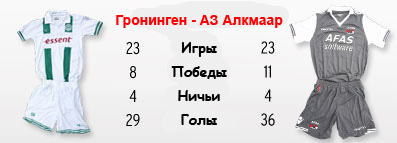 | Статистика встреч: 14-15-23 (61:82) | | Сезон 2011/2012 | | 06.05.2012 АЗ Алкмаар - Гронинген - 1:0 | | 28.08.2011 Гронинген - АЗ Алкмаар - 0:3 | | | | Сезон 2010/2011 | | 12.12.2010 Гронинген - АЗ Алкмаар - 2:0 | | 14.08.2010 АЗ Алкмаар - Гронинген - 1:1 | | | | Сезон 2009/2010 | | 30.01.2010 АЗ Алкмаар - Гронинген - 0:1 | | 31.10.2009 Гронинген - АЗ Алкмаар - 0:1 | | | | Сезон 2008/2009 | | 28.02.2009 АЗ Алкмаар - Гронинген - 3:0 | | 28.11.2008 Гронинген - АЗ Алкмаар - 0:2 | | | | Сезон 2007/2008 | | 17.02.2008 Гронинген - АЗ Алкмаар - 2:1 | | 07.10.2007 АЗ Алкмаар - Гронинген - 2:2 | | | | Сезон 2006/2007 | | 18.02.2007 Гронинген - АЗ Алкмаар - 1:1 | | 17.12.2006 АЗ Алкмаар - Гронинген - 2:0 | |