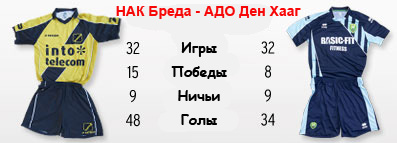 После двух побед подряд после смены тренера, казалось что "Бреда" выходит из кризиса, однако всё это был лишь всплеск эмоций, поскольку следующие два тура НАК снова проиграл. На неделе в стане "крыс" произошло значимое событие. Довольно неожиданным кадровым ходом брабантцы закрыли проблему на должности главного тренера команды. Джон Карелсе, под руководством которого "крысы" начинали текущий сезон, был уволен еще в конце октября за неудовлетворительные результаты, демонстрируемые командой. С тех пор "Бредой" руководил Адри Богерс, но и его труды особо успешными назвать сложно. В результате, новым наставником брабантской команды стал Небойша Гудель, который ранее тренировал молодежку "Бреды". Что любопытно, лицензию профессионального тренера серб получит только в январе следующего года, потому в настоящее время клуб выбивает ему разрешение на работу в KNVB. Также отметим, что в "Бреде" уже не первый сезон выступает его Неманья Гудель. "Ден Хааг" в прошлом туре потерпел сильный удар от ПСВ (1:6). Впрочем, от эйндховенцев сейчас все получают кучу мячей. Гаагцы идут сейчас в середине таблицы, а на выезде не проигрывали уже очень давно, что делает им чести. Шансы на успех в этом матче повыше у "аистов", впрочем "Бреда" может собраться и при очередном новом тренере дать бой своему сопернику.