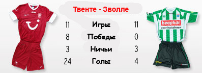 "Твенте" матчем с одним из аутсайдеров закроет программу 14-го тура. Аутсайдер аутсайдером, однако по игре "Зволле" смотрится весьма непростым соперником. "Твенте" в последних двух матчах потерял четыре очка, сыграв вничью с "Витессом" и "Утрехтом" и тем самым упустил первую строчку в таблице. Но то были матчи на выезде, сейчас же энсхедцам предстоит сыграть дома, где этот коллектив выигрывает все последние матчи, а в двух последних были крупные победы 3:0 над АЗ и "Фейеноордом". "Зволле", выиграв в прошлом туре у "Бреды", прервал свою трёхматчевую серию поражений. Но не будем строги к новичку Эре, ведь в этих матчах им противостояли "Аякс", ПСВ и "Херенвен". Фаворит в этом матче очевиден и скорее всего он оправдает ожидания. А с учётом противостояние ПСВ и "Витесса", в котором кто-то, да потеряет очки, то сегодняшняя победа "Твенте" будет ключевой и очень важной.