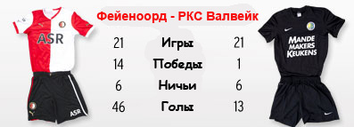 Противостояние "Фейеноорда" и "Валвейка" в первую очередь примечательно противостоянием двух тренеров. Битва двух братьев Куманов - Рональда и Эрвина. Оба коллектива не проигрывали три последних тура, но если РКС в одном из них очки потерял, сыграв вничью с "Гронингеном", то "Фейеноорд" имеет стопроцентный показатель - три победы из трёх с разницей мячей 10:2. Роттердамцы не теряют надежд на борьбу за самые высокие места, тем более отрыв от лидера составляет шесть очков, а это не так уж и много, с учётом того, что играть ещё больше половины сезона. РКС же провалился в октябре и начале ноября, когда имел серию из четырёх поражений кряду. Сейчас ситуация нормализовалась и коллектив из Валвейка занимает десятое место в таблице. На родном "Де Кейпе" роттердамцы ещё ни разу не проигрывали, являясь тем самым одной из двух команд не проигрывающих в родных стенах. Второй командой является "Твенте". "Фейе" безусловный фаворит, однако РКС списывать со счетов сразу не стоит.