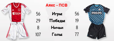 | Статистика встреч: 42-23-47 (186:189) | | Сезон 2011/2012 | | 25.03.2012 Аякс - ПСВ Эйндховен - 2:0 | | 18.09.2011 ПСВ Эйндховен - Аякс - 2:2 | | | | Сезон 2010/2011 | | 27.02.2011 ПСВ Эйндховен - Аякс - 0:0 | | 20.11.2010 Аякс - ПСВ Эйндховен - 0:0 | | | | Сезон 2009/2010 | | 14.03.2010 Аякс - ПСВ Эйндховен - 4:1 | | 16.08.2009 ПСВ Эйндховен - Аякс - 4:3 | | | | Сезон 2008/2009 | | 19.04.2009 ПСВ Эйндховен - Аякс - 6:2 | | 16.11.2008 Аякс - ПСВ Эйндховен - 4:1 | | | | Сезон 2007/2008 | | 19.03.2008 ПСВ Эйндховен - Аякс - 0:0 | | 30.01.2008 Аякс - ПСВ Эйндховен - 0:2 | | | | Сезон 2006/2007 | | 18.03.2007 ПСВ Эйндховен - Аякс - 1:5 | | 12.11.2006 Аякс - ПСВ Эйндховен - 0:1 | |