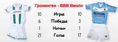 Проиграв в прошлом туре "Аяксу", "Гронинген" прервал свою четырёхматчевую беспроигрышную серию. По началу дела у "северян" в чемпионате шли ужасно, даже шли разговоры о возможной смене тренера. Однако сейчас ситуация более менее стабилизировалась, хотя и далека от идеала. У "Венло" тоже игра и результаты стабилизировались и произошло это после того, как наставник команды Локхофф перетряхнул свой состав. Избавился от стереотипов и дал шанс многим игрокам, которые по началу сезона в состав не проходили, причём так было сделано во всех линиях. После сенсационной победы над АЗ в 11-ом туре, ВВВ сотворил ещё одну сенсацию. В прошлом туре "Венло" одолел "Витесс", который в этом сезоне представляет из себя серьёзную силу. Таким образом, коллектив Тона Локхоффа потихоньку отдаляется от подвала таблицы и уже обогнал в ней "Бреду" и "Роду". Правда очковый запас не позволяет расслабиться. Один-два тура и можно вновь оказаться в самом низу. Сейчас календарь располагает к тому, что надо набирать очки. После поединка с "Гронингеном", последуют матчи как раз с "Родой" и "Бредой", правда с последней уже после зимнего перерыва.
