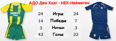 Эти две команды в мид-уик отдыхали, поскольку вылетели из национального Кубка ещё на ранних стадиях. НЕК в 1/32 финала, уступив "Фейеноорду", а "Ден Хааг" в 1/16 финала проиграв "Гронингену". В чемпионате и те, и другие выступают достаточно неплохо и разделяют их всего четыре очка. Но если "Неймеген" себе создал задел перед ближайшими соперниками и на зимний перерыв уже точно уйдёт находясь на 7-й строчке, то вот "Ден Хааг" ещё может опуститься, поскольку гаагцы находятся в плотной группе команд. И та, и другая команда три тура кряду не может победить, что говорит о некотором спаде. Хотя с другой стороны у "аистов" в соперниках были "Фейеноорд" и "Твенте" и лишь ничья с "Зволле" может считаться потерей очков, а НЕК в прошлом туре и вовсе сумел отнять очки у грозного ПСВ, правда до этого проиграл "Валвейку" и поделил очки с "Бредой". На своём поле АДО играет в этом сезоне крайне неудачно. Всего одна победа в восьми матчах - вряд ли это хороший показатель. НЕК же на выезде одержал четыре победы в тех же восьми поединках. В первом круге команды очки поделили.
