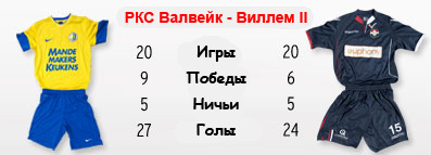 | Статистика встреч: 15-5-21 (50:68) | | Сезон 2012/2013 | | 06.10.2012 Виллем II - РКС Валвейк - 1:0 | | | | Сезон 2009/2010 | | 29.01.2010 Виллем II – РКС Валвейк - 2:1 | | 01.11.2009 РКС Валвейк – Виллем II - 0:1 | | | | Сезон 2006/2007 | | 22.04.2007 РКС Валвейк – Виллем II - 1:1 | | 25.11.2006 Виллем II – РКС Валвейк - 3:1 | |