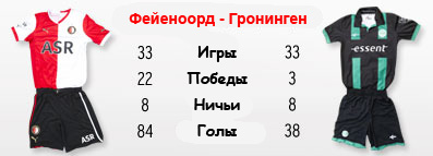 У Рональда Кумана уже достаточно успехов в не столь уж давно начавшейся тренерской карьере. Он выводил в Кубок УЕФА малобюджетный "Витесс", выигрывал чемпионат Голландии с "Аяксом" (дважды) и ПСВ, побеждал с "Валенсией" в Кубке Испании, один раз поднимал над головой и национальный кубок. Очевиден прогресс и нынешней команды Кумана - "Фейеноорда". Приняв клуб из Роттердама середняком голландского футбола, Рональд в первый же сезон стал с ним вице-чемпионом страны, опередив куда более обеспеченные ПСВ и "Твенте". Неплохо выступает "Фейеноорд" и в текущем сезоне, занимая 5-е место в турнирной таблице. "Гронинген" завершает 2012 год двумя сложными матчами против грандов национального футбола. На неделе "бело-зеленым" предстояло пободаться с самим "Аяксом", в результате чего "северяне" вылетели из национального Кубка, а сегодня в рамках чемпионата отправятся в Роттердам на рандеву с "Фейеноордом". В турнирной таблице Эредивизии "Гронинген" занимает лишь 10-е место. Отметим, что на поле роттердамцев, "северяне" побеждали в истории всего три раза.
