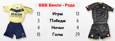 Завершится же последний тур в этом году матчем двух аутсайдеров. "Венло" и "Роду" в турнирной таблице разделяют три очка и в случае победы керкрадцев, они сумеют нагнать своего нынешнего соперника и сравняются с ним по очкам, создав серьёзную плотность в нижней части таблицы. ВВВ в последних матчах набрал неплохой ход и не знает поражений уже четыре тура кряду, правда и победа была всего одна, но зато какая, над самим "Витессом". У "Роды" дела обстоят куда хуже. Девять (!) туров подопечные Рууда Бруда не знают побед. И даже уже капитан команды и лучший снайпер Сенхариб Малки ничего не может поделать. Нет, он конечно продолжает и передачи отдавать и сам забивать, но побед его это не приносит, потому что один в поле не воин. Интересно, что за календарный 2012 год именно сириец забил больше мячей среди всех игроков Эре. И если он покинет команду в зимнее трансферное окно, то "Рода" может покинуть голландскую элиту, во что трудно поверить. Но даже не смотря на столь плачевные результаты, кредит доверия у наставника керкрадцев Рууда Бруда пока есть. "Венло", впрочем, обыгрывать необходимо.