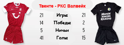У "Твенте" уже в первом туре после зимнего перерыва появляются прекрасные шансы на то, чтобы стать единоличным лидером. Для этого коллективу Стива Макларена достаточно набрать одно очко в поединке с "Валвейком". А если удастся победить, то можно даже создать задел перед ближайшими преследователями. Дело в том, что ПСВ в своём матче допустил серьёзную оплошность, проиграв одному из аутсайдеров и новичку элиты голландского футбола "Зволле". Заканчивали первый круг "красные" двумя победами над "Хераклесом" и АЗ Алкмааром. У "Валвейка" после поражение от "Фейеноорда" была серия из трёх матчей без поражений. Домашний успех над "Неймегеном" и две ничьи с "Виллемом" и "Витессом". Однако РКС в последнем туре лишился главного снайпера Тедди Шевалье, который схлопотал две жёлтые и, как следствие, красную карточку, а потому участия в этом матче не примет. В связи с этим у Эрвина Кумана могут возникнуть проблемы, потому что второго такого забивалы в его активе нету. Зато получал шанс те, кто мало играл в первой части сезона. Отметим, что на своём поле "Твенте" ещё ни разу не проигрывал в этом сезоне, а в первом круге праздновал минимальную победу над нынешним соперником.