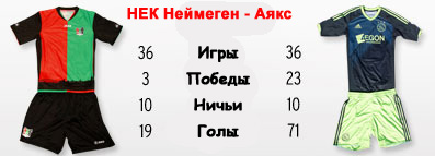 Заключительный поединок тура пройдет в Неймегене, куда пожалует чемпион. "Аякс" начал сезон боевой ничьей с АЗ, а игра амстердамцев вызвала много вопросов. Разумеется, для того, чтобы втянуться в сезон подопечные Франка де Бура должны провести несколько матчей, однако сейчас на первый план как для "Аякса", так и для любой другой команды выходит результат. Потери очков жаркими (хотя в Голландии это вряд ли) августовскими деньками могут дорого стоить будущей весной. "Аякс" фаворит, но легкой прогулки амстердамцам ждать не следует, это уж точно. НЕК в первом туре сумел продемонстрировать хорошую реализацию в матче с "Херенвеном", который завершился победой команды Пастора со счётом 2:0. Причём, та игра была выездной, а теперь НЕК откроет сезон домашним матчем. Просто команде Де Бура точно не будет, однако одержать первую победу столичная команда обязана, ведь у "Твенте" уже шесть очков, соответственно, отрыв только увеличивается.