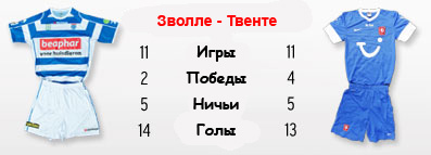 | Статистика встреч: 2-9-12 (20:39) | | Сезон 2012/2013 | | 25.11.2012 Твенте - Зволле - 2:2 | | | | Сезон 2003/2004 | | 07.02.2004 Твенте - Зволле - 2:0 | | 02.11.2003 Зволле - Твенте - 1:0 | | | | Сезон 2002/2003 | | 10.05.2003 Твенте - Зволле - 0:0 | | 17.11.2002 Зволле - Твенте - 1:1 | |
