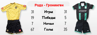 Борющаяся в этом сезоне за выживание "Рода" сыграет с "Гронингеном". Керкрадцы к 25-ому туру одержали всего четыре победы, в то время как в прошлом году к этому же моменту в их активе числилось аж 11 выигрышей. "Гордость Юга" не может победить уже на протяжении пяти туров кряду. Сначала "Рода" четырежды играла вничью со своими соперниками, а в прошлый уикенд с позором уступила "Утрехту" (4:0). И всё это случилось после прихода в команду Рууда Бруда, экс-тренера "Валвейка". Когда на посту тренера керкрадцев был Харм ван Вельдховен, то таких провалов у "Роды" не было. "Гронинген" же провалив концовку в прошлом году, да и начало в этом, постепенно начал побеждать. Две победы кряду над АЗ и "Валвейком" существенно приподняли коллектив Масканта. Даже не стало страшным поражение от "Витесса", поскольку затем последовала победа над "Зволле" в прошлом туре. Отметим, что "северяне" забили уже в компенсированное время, а так игра сводилась бы к ничьей. Сейчас "Гронинген" располагается в середине таблицы, где скорее всего и окажется по окончанию сезона.